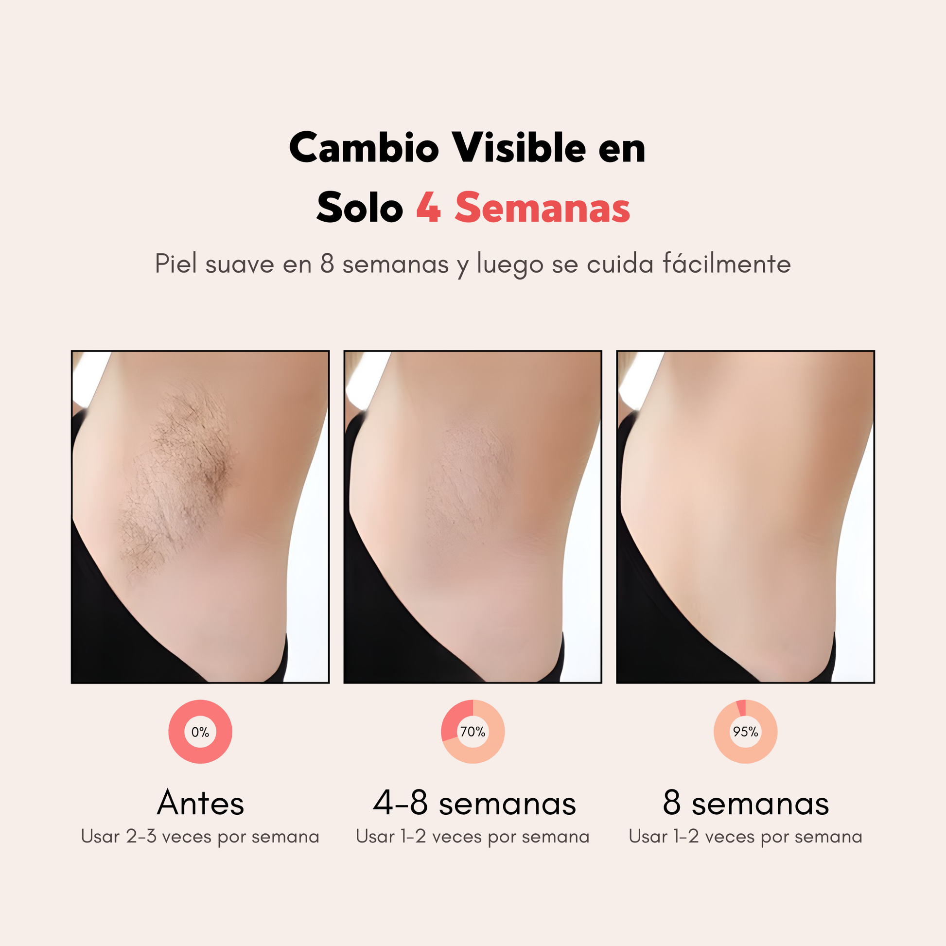 - ✨ Resultados visibles en solo 3 semanas, con una reducción del vello de hasta 70% usando el dispositivo solo 2–3 veces por semana.